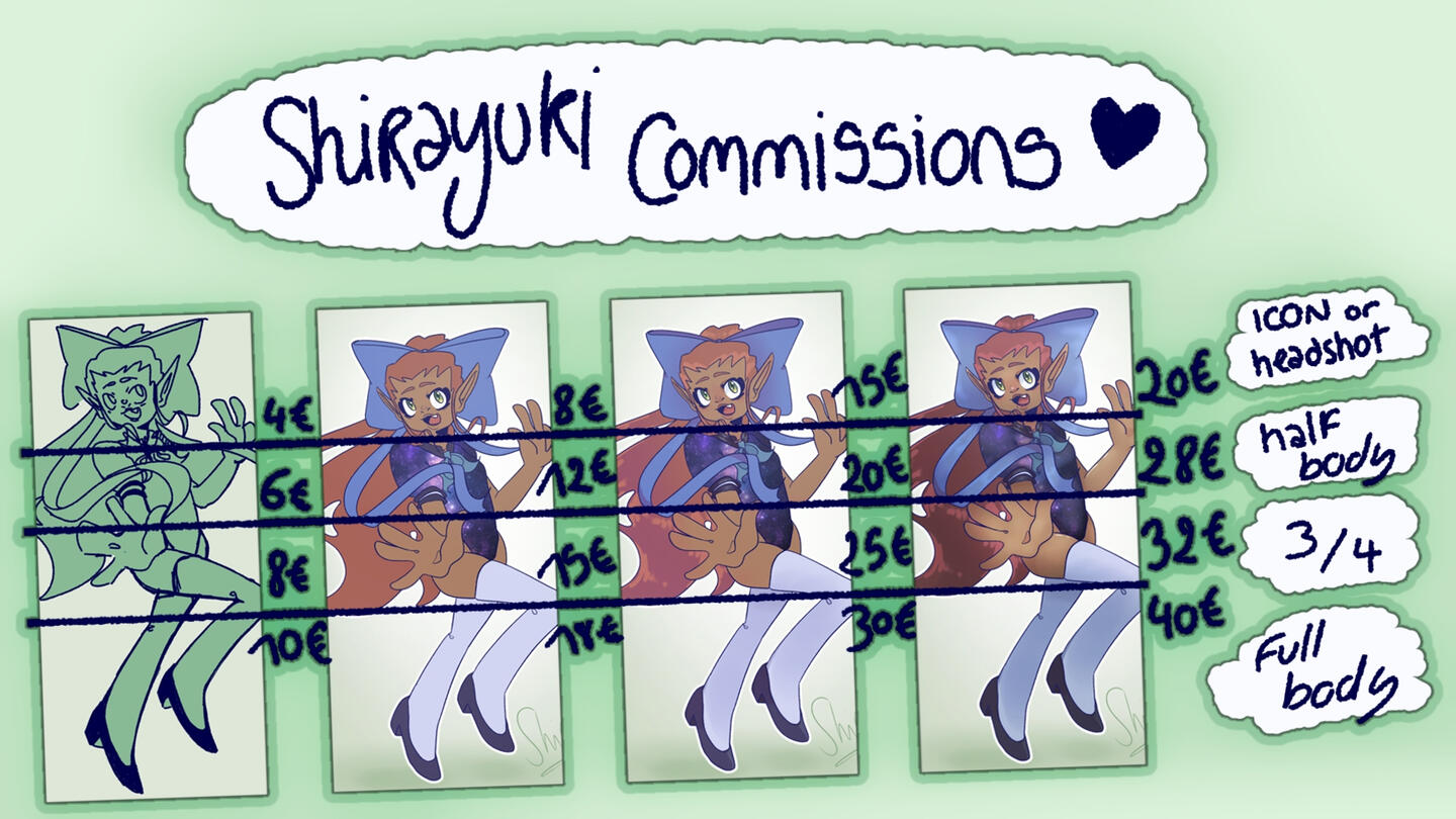 ... For payments under 30€, full payment is required upfront before I begin working on it. For commissions above that amount, you can pay half upfront half upon completion.Refunds :... I will give you refunds if I can't make the commission.